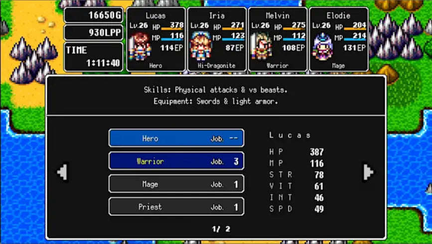 Make a return to the golden age of RPGs with 8-bit graphics and chiptunes. By unlocking growth plates, characters are able to strengthen parameters, learn skills, and increase job rank! Master multiple jobs and live an adventure full of challenges and dungeons to explore!