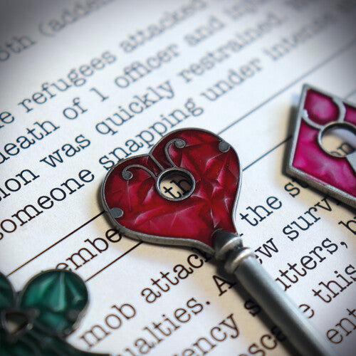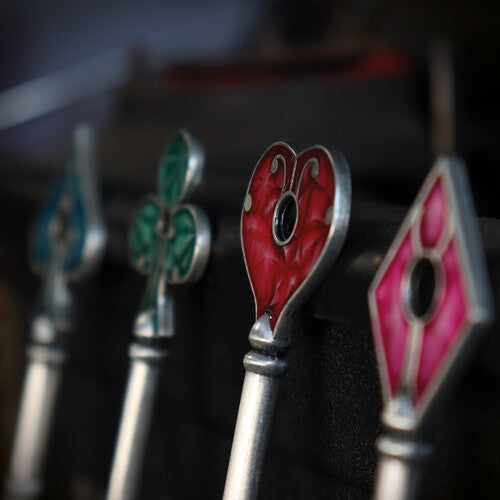 Each key stands at 100 mm tall and features intricately detailed enamel colouring on the head of the key creating a faithful recreation of the classic Heart, Diamond, Club, and Spade designs.